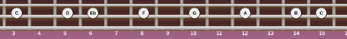 by intervals shown in the fretboard diagram below